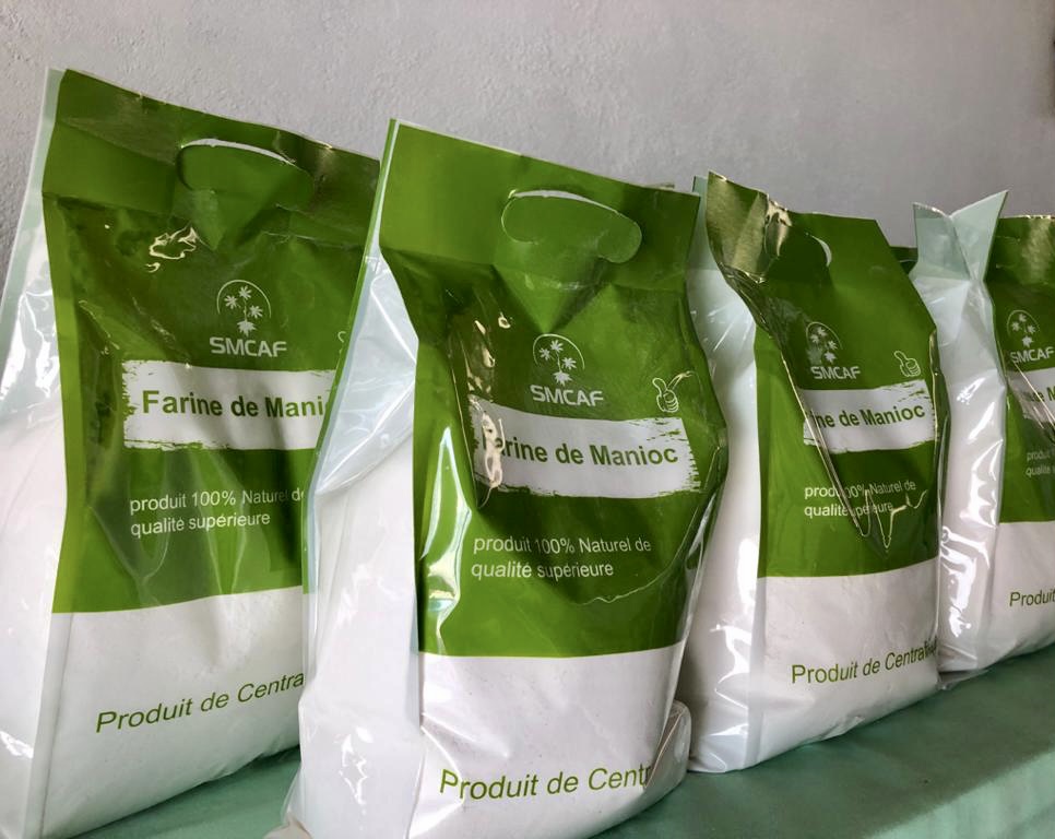 Nos produits sont conditionnés surplace en République Centrafricaine, il s’agit principalement des produits dérivés de manioc à savoir la farine de manioc, Les feuilles fraîches et séchées, présentés en sacs de 1 kg , 5 kg , 10kg et 25kg pour la farine et en paquets de 200g pour les feuilles de manioc.